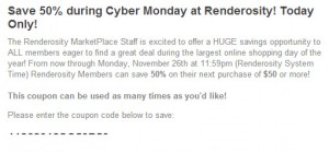 Finally, just when most everyone’s run out of PayPal cash… the 50% Renderosity sale is on, for 26th November 2012 only. Ends at 11:59pm (Renderosity System Time).