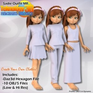 I note that Teknology 3D has 3D merchant-resource clothing kits for 3D Universe’s Sadie and Sam. These work with Daz’s free Hexagon software, and look nicer and perhaps a bit easier to work with than their DAZ store equivalents?