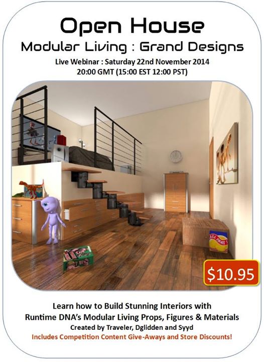 The new Modular Living series, at Runtime DNA, offers a large range of upmarket studio-apartment rooms and furnishings… Update: This appears to be one of the items which vanished with the demise of the RuntimeDNA store.