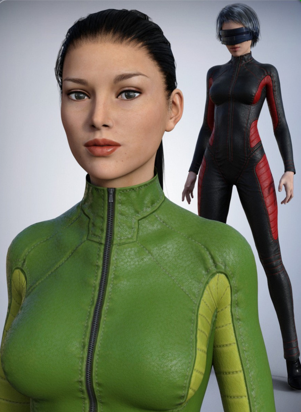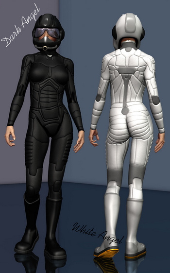 Also fairly space-y / sci-fi is Leather Body Suit for Genesis 2 Female. It seems like a very flexible base outfit with fine leather bump-mapping, for everything from super-spies to superheroes to kink. I suspect there will be a lot of texture packs for this one.