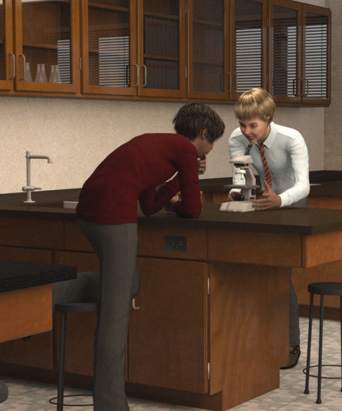 In general scenes, the Science Classroom is a classic school science lab of yesteryear, from the era before risk-averse schools locked the door to the hydrogen sulfide cabinet and sealed off the Bunsen burners. The new Detention Room has props that might add to the Science Classroom.