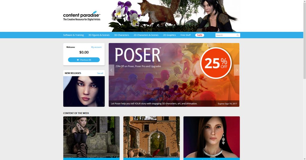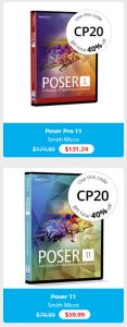 The newly revamped Content Paradise store now has a “Sale” page linked, from the top of the front page. 40 pages of sale items, headed by a Poser 11 sale. Upgrade from Poser 6 or above, to Poser 11 Standard, for just $60…
