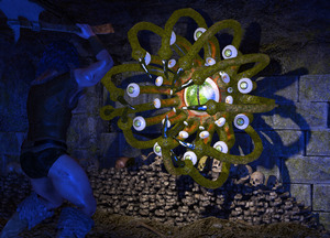 Oculus Guard from Cybertenko. A typical D&D style gate-guard monster. Probably lives in the new Ruined Tower.