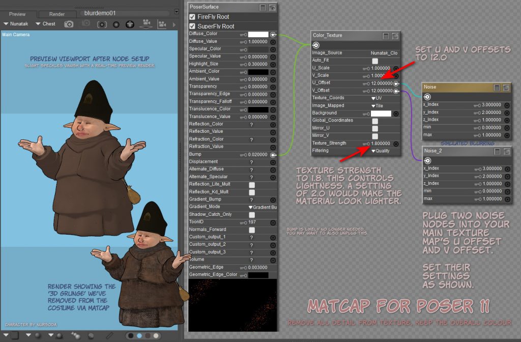 A basic de-grunging Matcap for Poser 11. Remove grunge and speckling from materials, while retaining the overall colour. To be used in combination with the Poser Comic Book mode, to get colour flats.