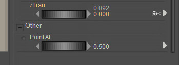For a less abrupt eye movement, after apply the script you can also click on each eye, and scroll down to the bottom of its Parameter dials list. There you will see a new “Point at” dial. By default, this is at 1.0. Set it to 0.5 for subtler movement.