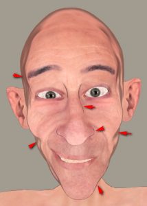 If the Toon shader is temporarily disconnected, and the Comic Book mode is applied, it shows it was the toon shader producing the nice nose-ridge and nostril lines.