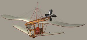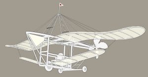 A nice model of a real early plane made in the 1890s in Japan, and modelled on beetle-wings. Parts of the public domain OBJ have been mesh-smoothed, especially the rear propeller, and double-sided material problems fixed. Some light types cause texture flicker on the semi-translucent wings, but to fix this simply angle the light differently or change it for another type. Vince Bagna’s SuperShaders are good for Superfly renders with this, re: wood, rubber and metal, but there should be no need to replace the wing material.