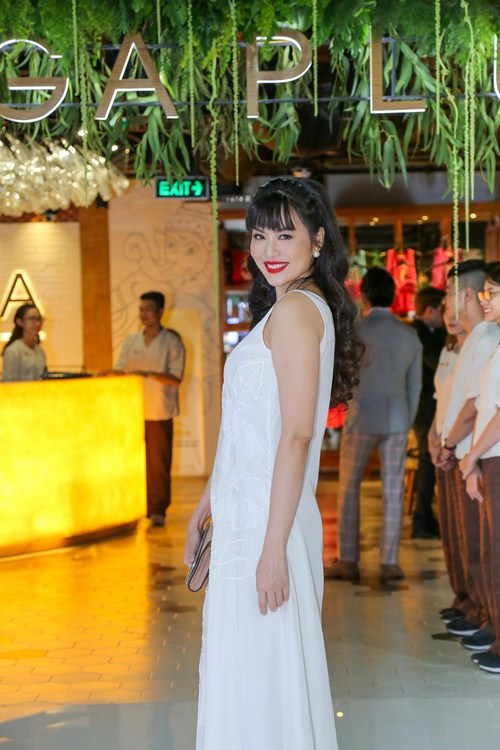 Đến dự khai trương chính thức trung tâm Yoga Plus tại Thảo Điền, Thu Thuỷ dịu dàng trong váy trắng dài, son môi đỏ và thần thái rạng rỡ. Chị được chọn làm đại diện cho thương hiệu Yoga Plus bởi phù hợp với tiêu chí một người đàn bà có vẻ đẹp bất chấp thời gian từ tinh thần, cơ thể và tâm trí. Một người truyền cảm hứng Yêu bản thân cho rất nhiều phụ nữ hiện đại.