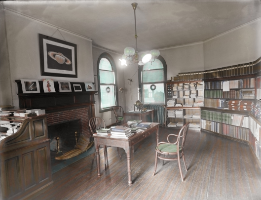 I’ve newly colourised two interior pictures, one showing the Observatory library in which the young Lovecraft spent so much time: